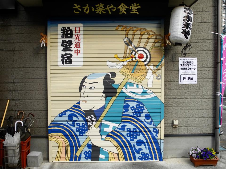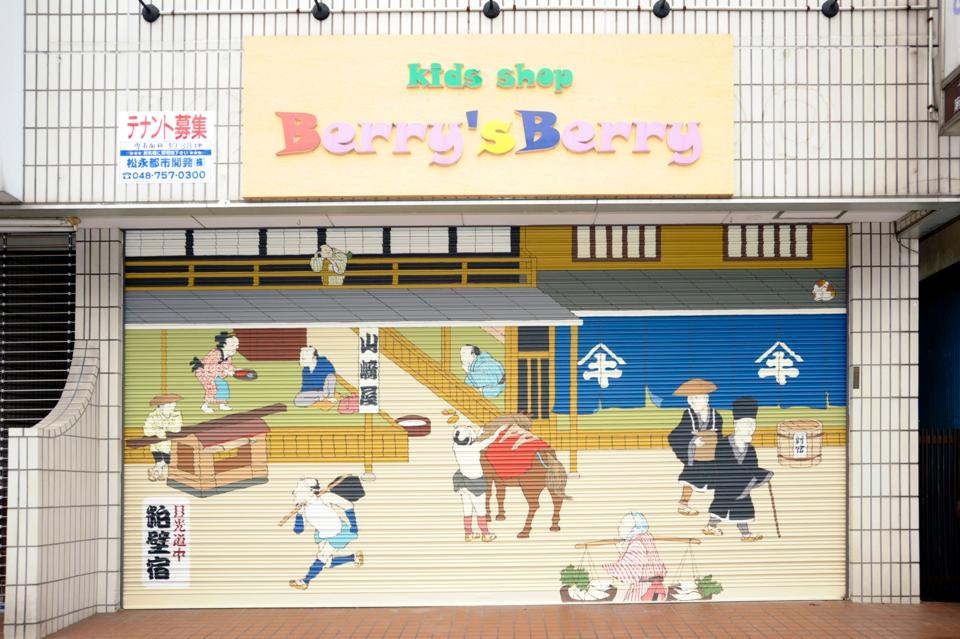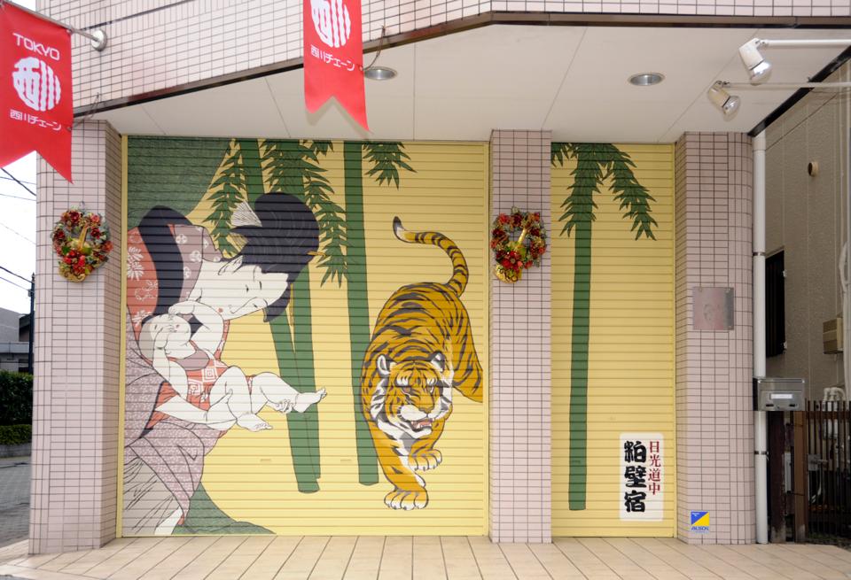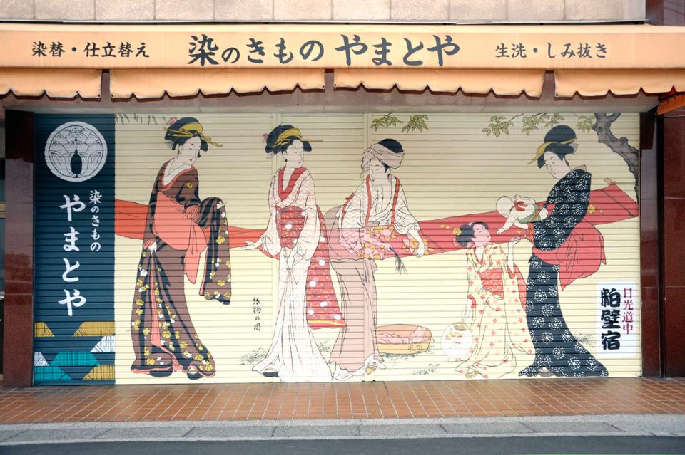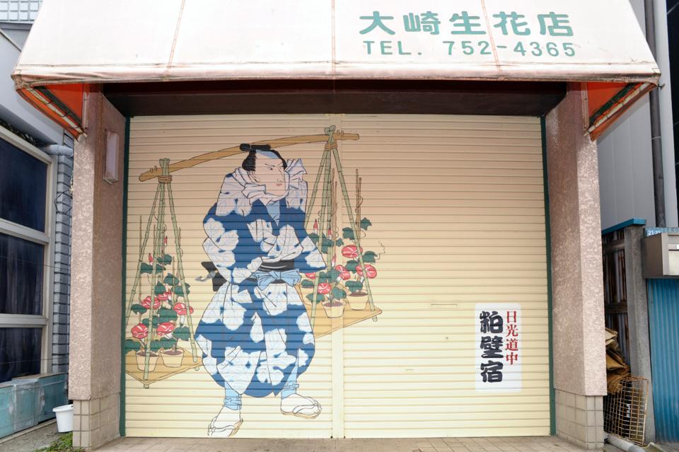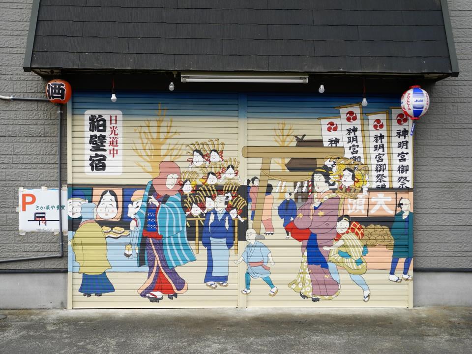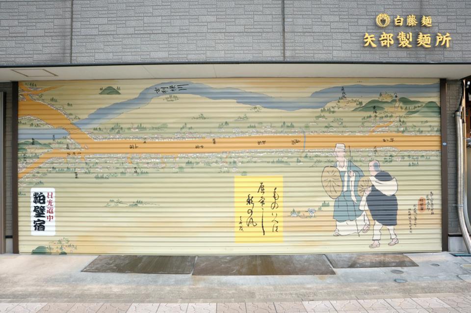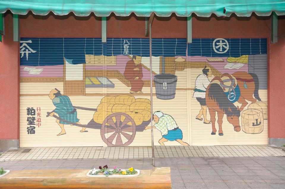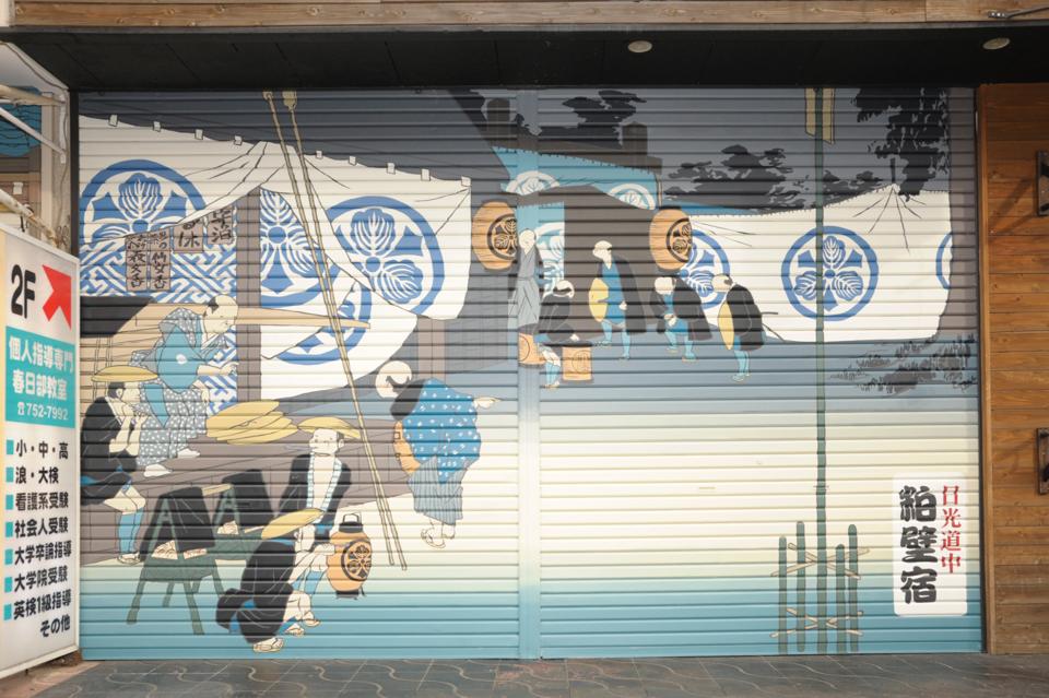 春日部市のシャッターアート 〜まちかど歴史絵巻「日光道中 粕壁宿」