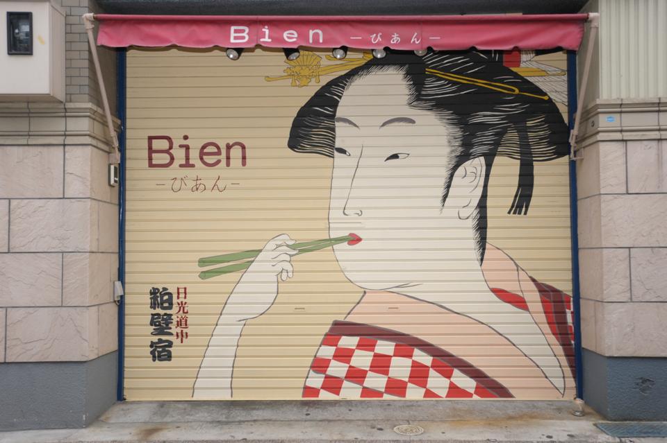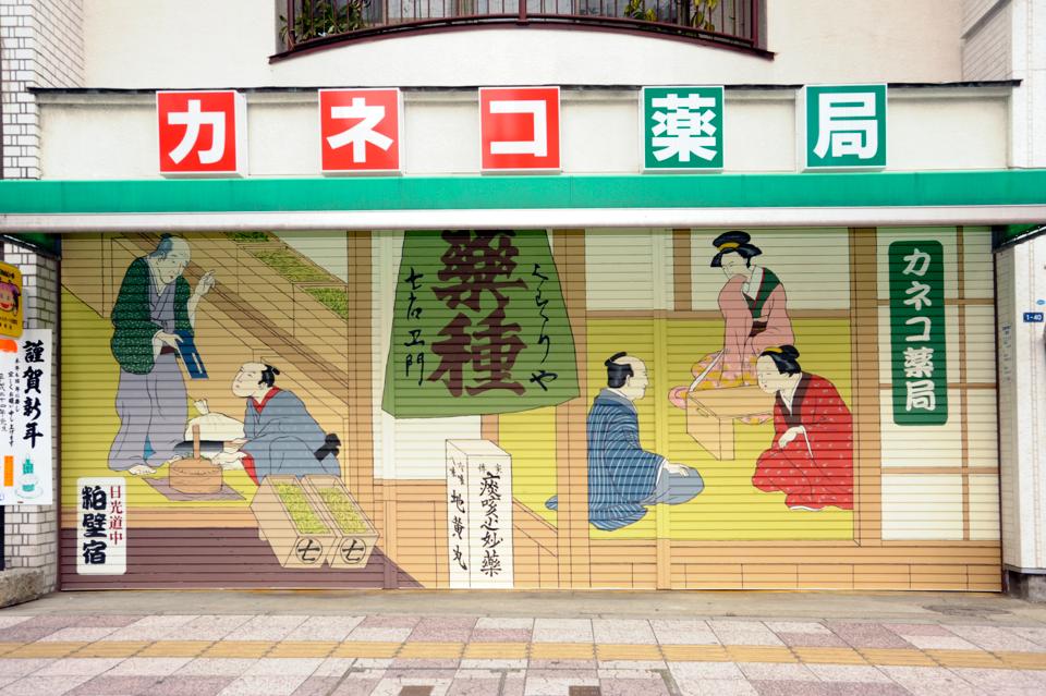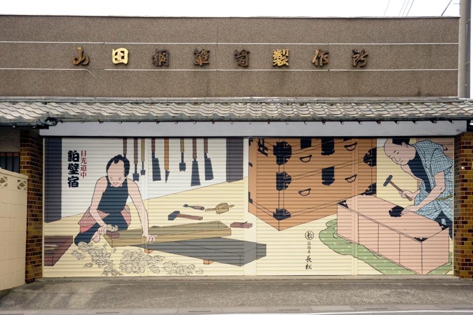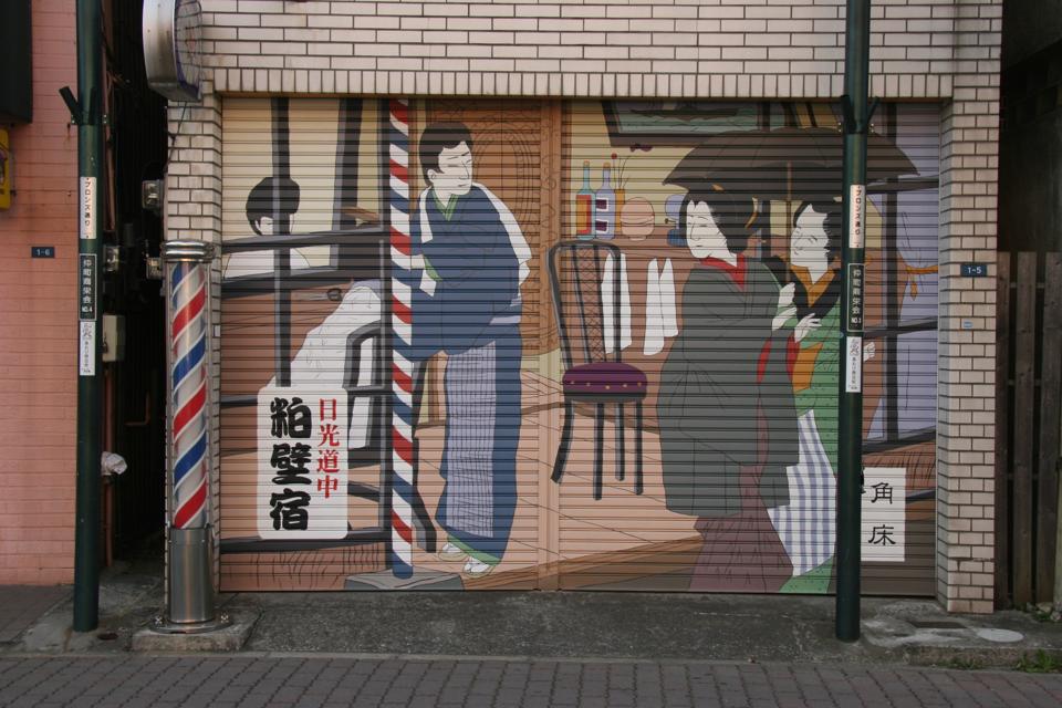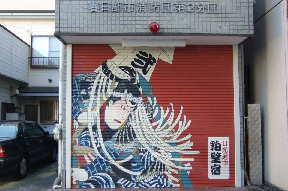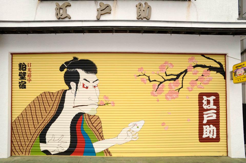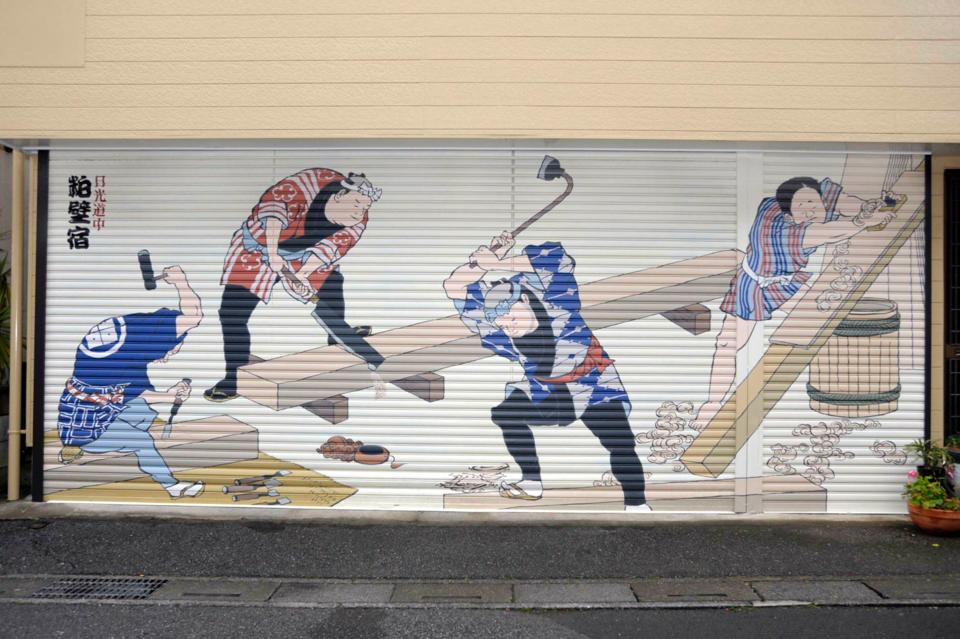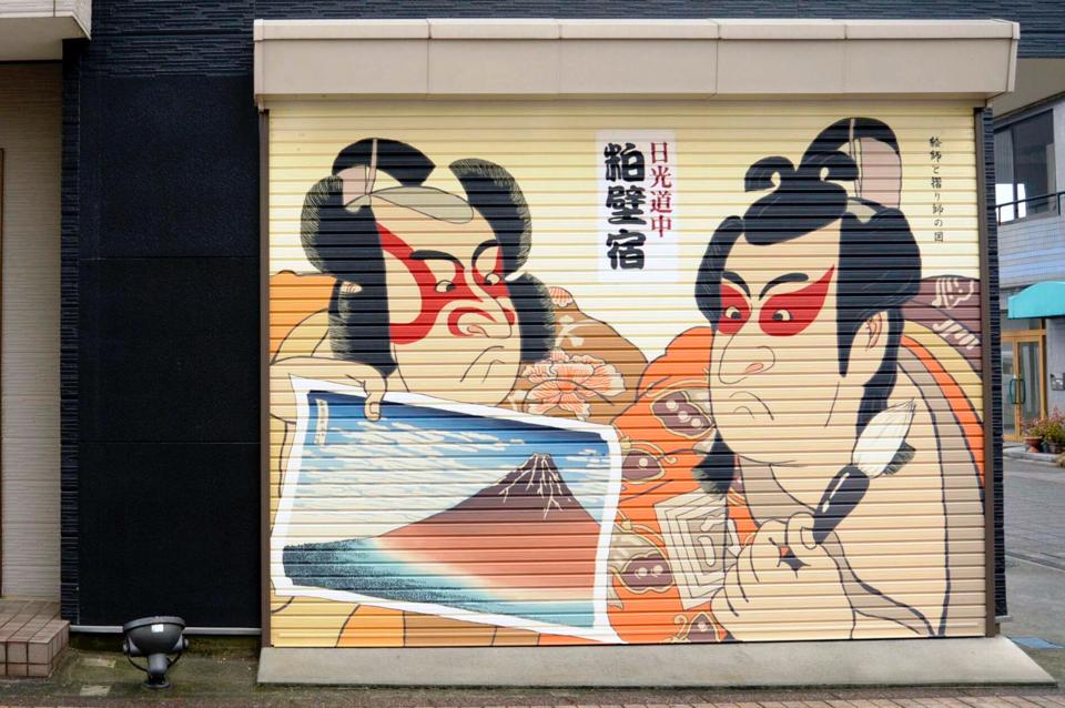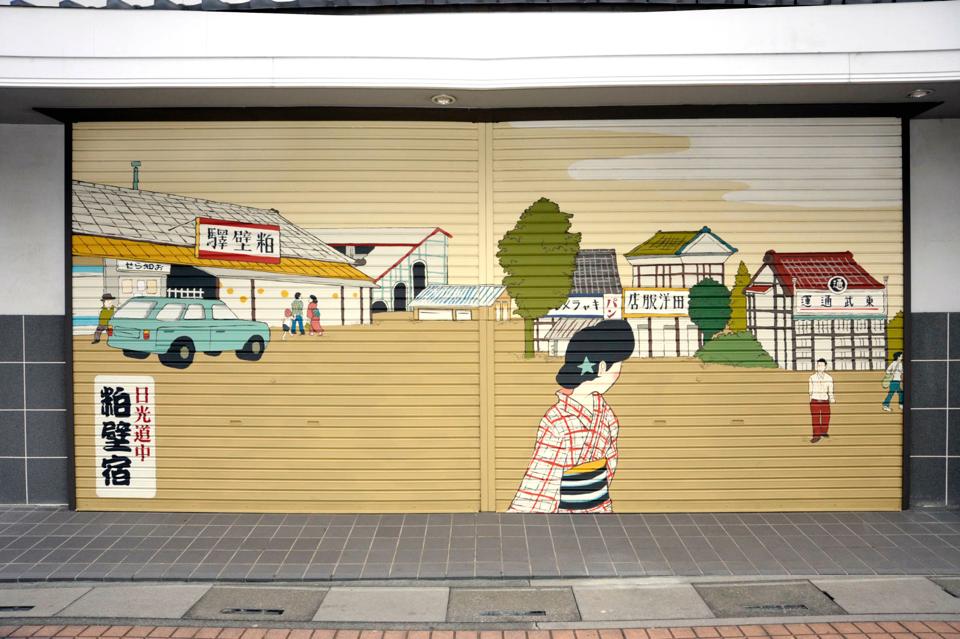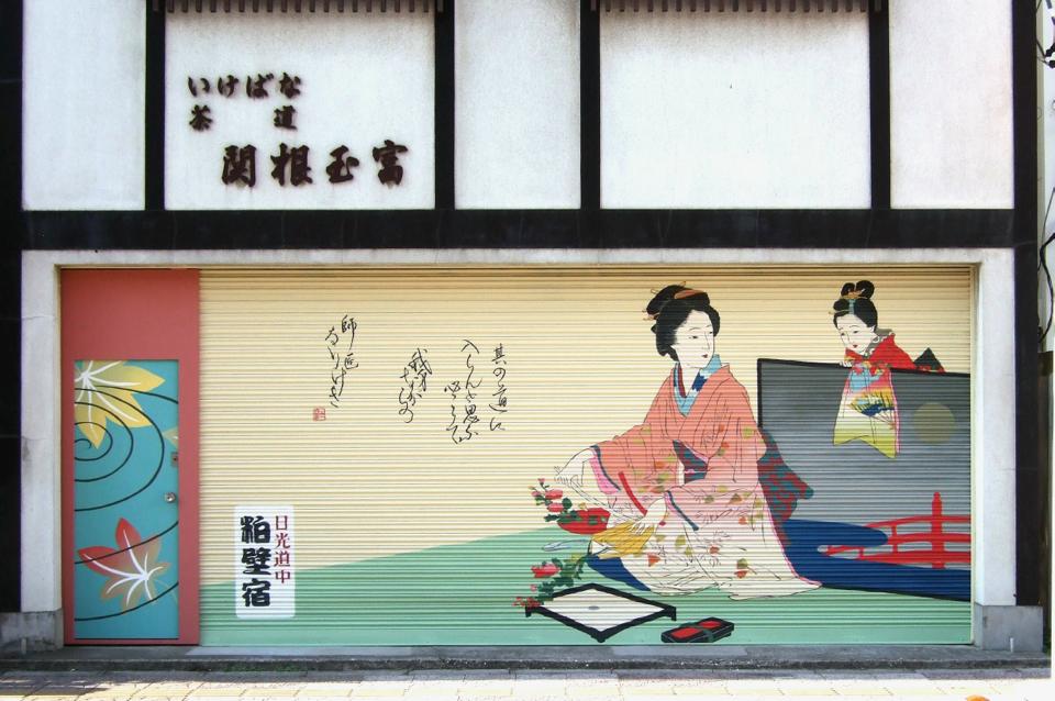 春日部市のシャッターアート 〜まちかど歴史絵巻「日光道中 粕壁宿」