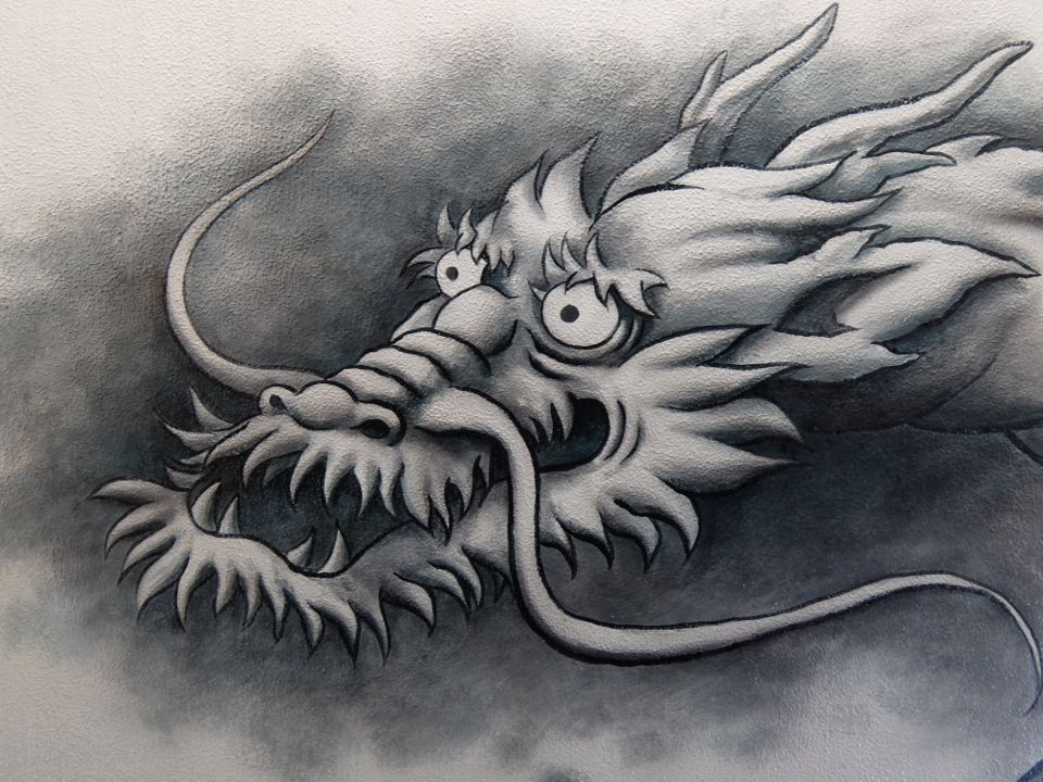 ・龍は、中国の水墨画にも多く登場するが、日本の龍との違いは、爪の数が中国は5本に対して日本は3本である。玉(宝珠)を持っているのは、中国が多い。